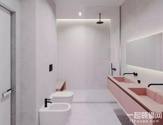 卫生间内部做一个玻璃隔断搭配挡水条来干湿分离,淋浴区内还加上了凳子方便坐着淋浴,双台盆的设计方便屋主一家人日常洗漱。